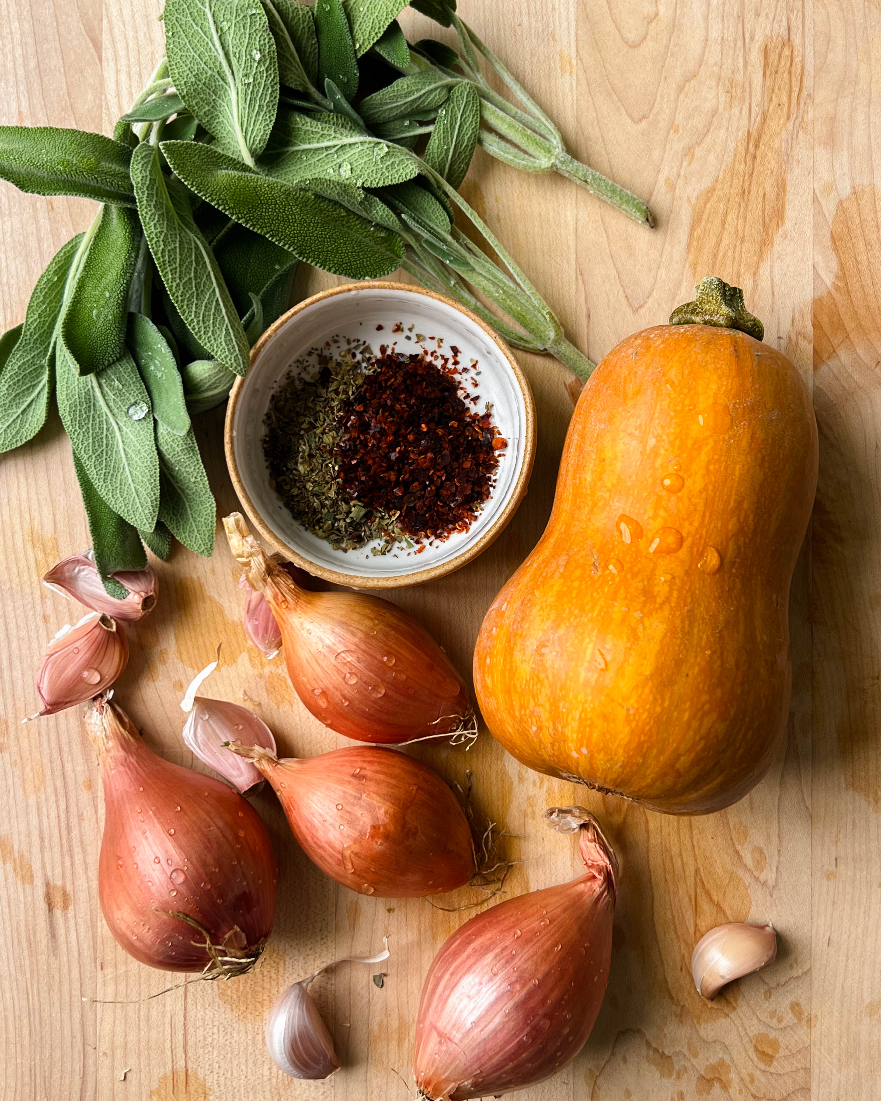 While the squash roasts, prep the aromatics, and gather your ingredients.